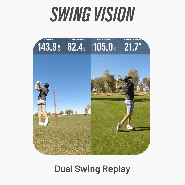 - Tracks ball speed, club speed, spin rate, launch angle, and carry distance